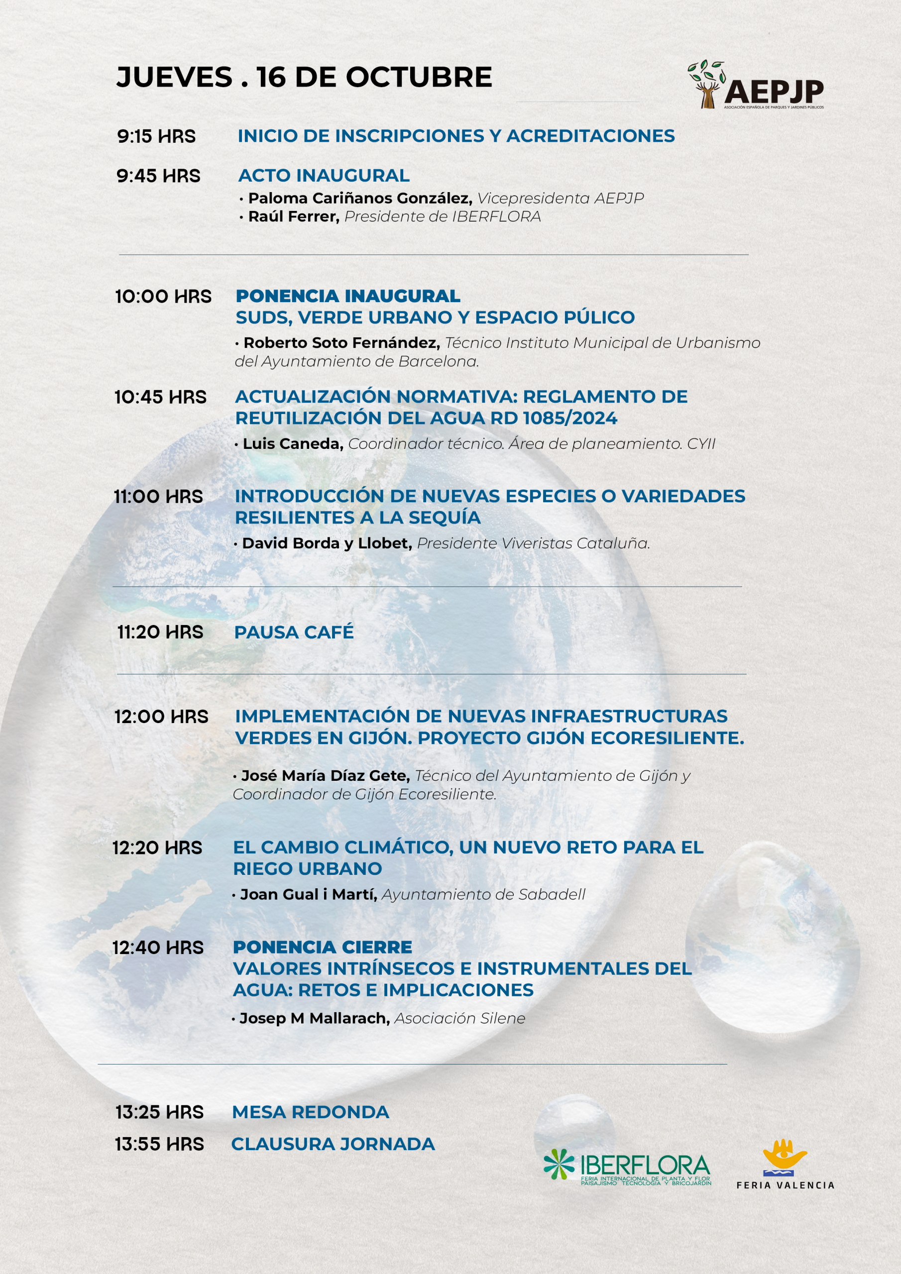 La AEPJP junto con Iberflora, organizan la Jornada Técnica de Riego: “Contribución de la Infrestructura verde al ciclo del agua urbano” que se llevará a cabo el 16 de Octubre de 2025 dentro de la programación de Iberflora 2025 (Valencia), en la sala Joaquín Rodrigo a partir de las 9h de la mañana.
